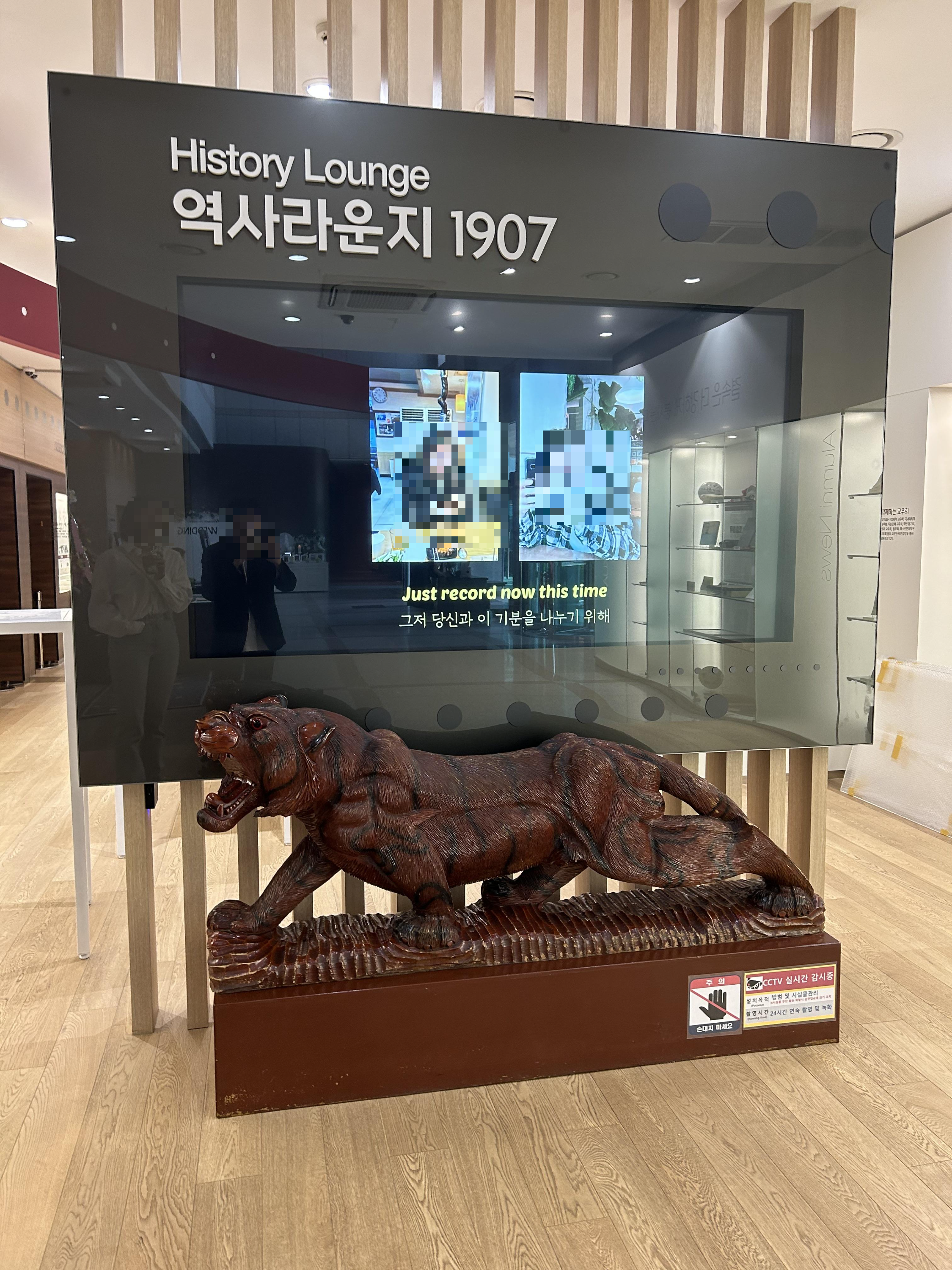 1층 역사라운지에서는 식전 영상을 무료로 틀어주는데, 퀄리티가 꽤 괜찮아 보였어요. 저희도 꼭 영상을 만들어서 보내려고 해요!