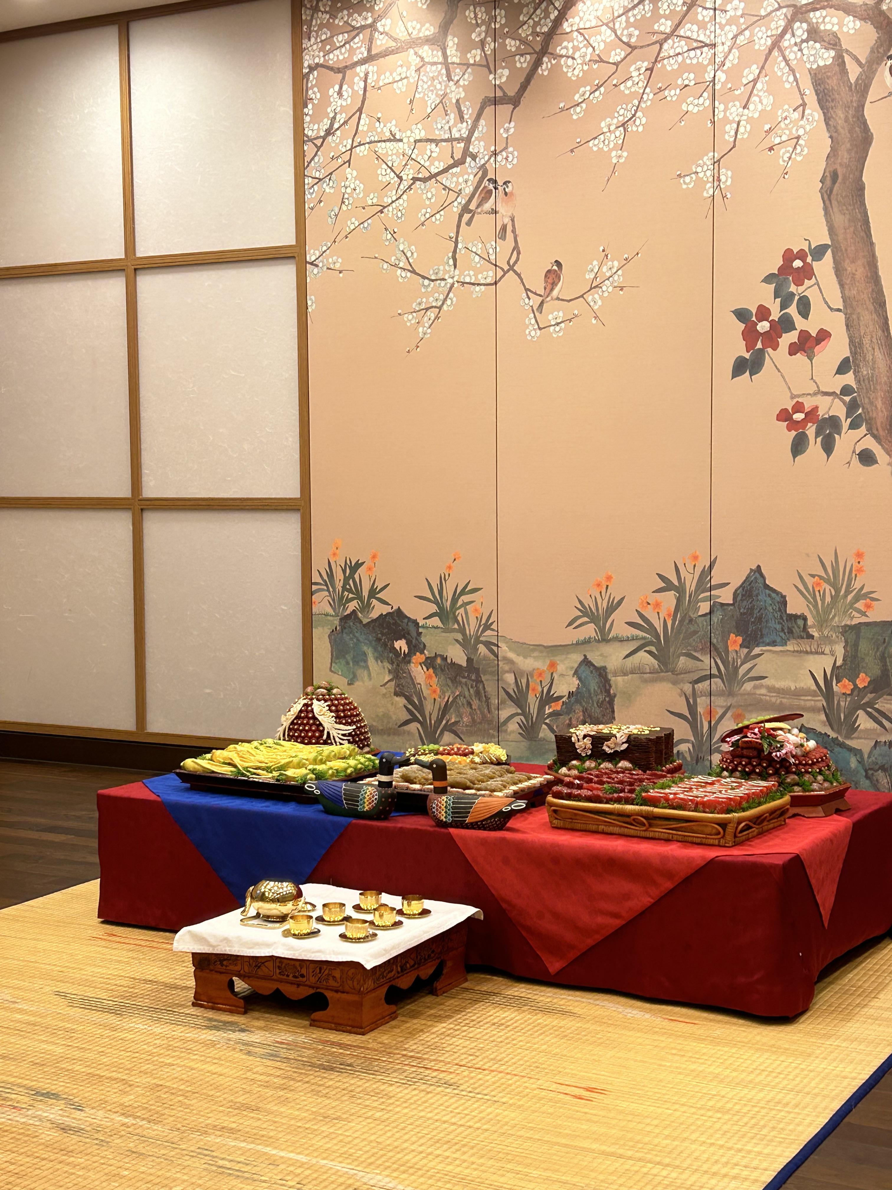 폐백실은 생각보다 넓고 깔끔했어요. 아직 폐백 여부는 결정하지 못했지만, 혹시 폐백을 진행하지 않더라도 소정의 금액을 내면 모형 음식과 한복을 대여해서 사진 촬영을 할 수 있다고 해요.
