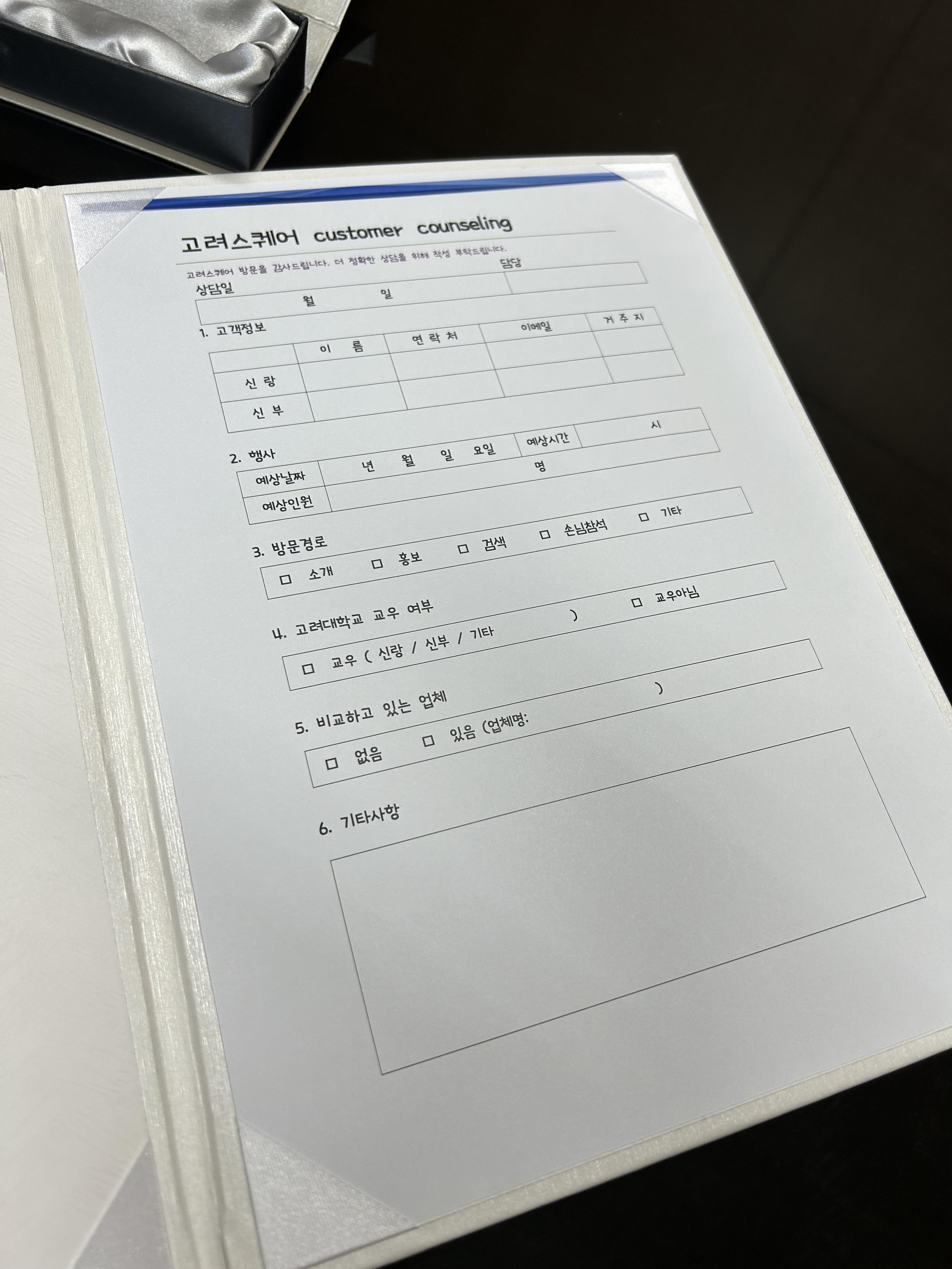 예약실은 깔끔하고 쾌적했고, 직원분들도 친절하게 맞아주셨어요. 상담은 실장님(?)으로 보이는 분께서 직접 진행해 주셨는데, 학교 웨딩홀이라 가격은 정찰제로 운영되고 있었어요. 대관료나 꽃값은 다른 웨딩홀에 비해 저렴한 편이었지만, 식대는 부페와 코스에 따라 조금씩 달랐고, 솔직히 저렴하다고 느껴지진 않았어요.